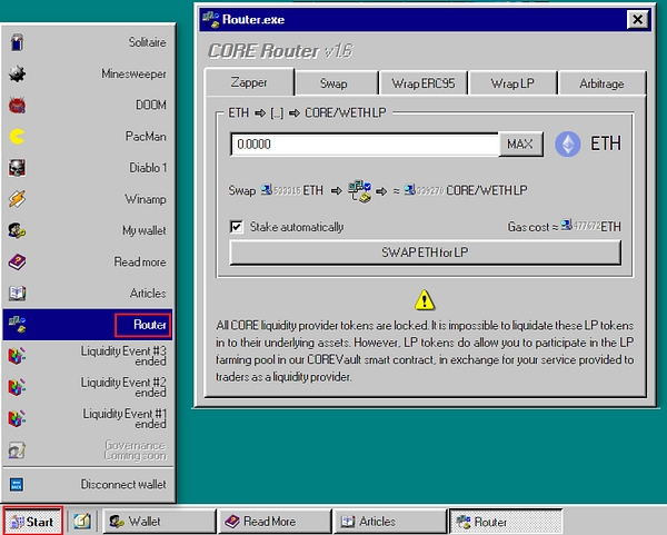 The updated CORE Router on cvault.finance allows for LP tokens which missed the migration to coreDAO Vouchers, to be wrapped and exchanged.